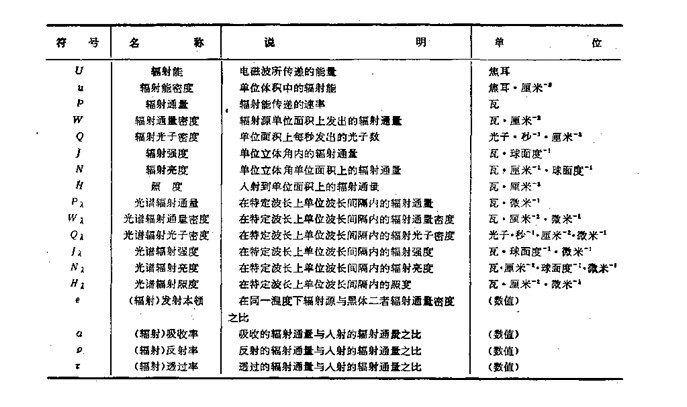 1) 凡是冠以“輻射”前綴的術語,均強調它們是輻射量,不是光度量。